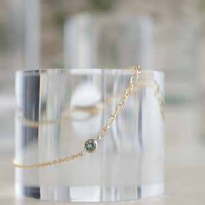 This bracelet is designed in our Boulder, Colorado studio and handcrafted using an ethically sourced sapphire & recycled gold.