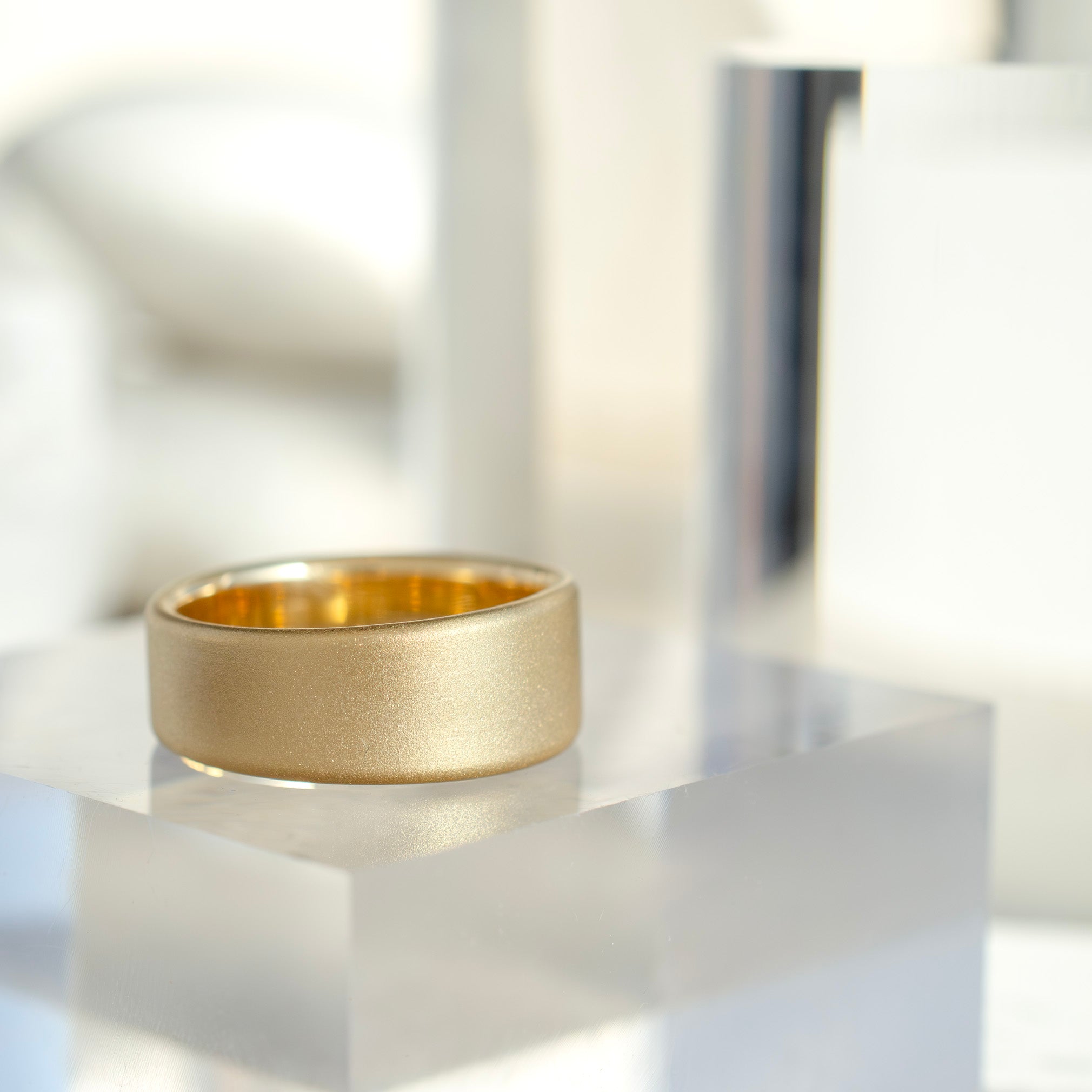 With its low profile, softened edges, and subtle, undulating form, the James feels natural from the first wear. Cast from solid 18k gold or platinum, it carries a reassuring weight and integrity that comes from true precious metal - no plating, hollowness or shortcuts. The interior is contoured for ease and wearability. Substantial yet understated, the James reflects the thoughtful design and lasting, generational qualities at the heart of our Men’s Heritage Rings.