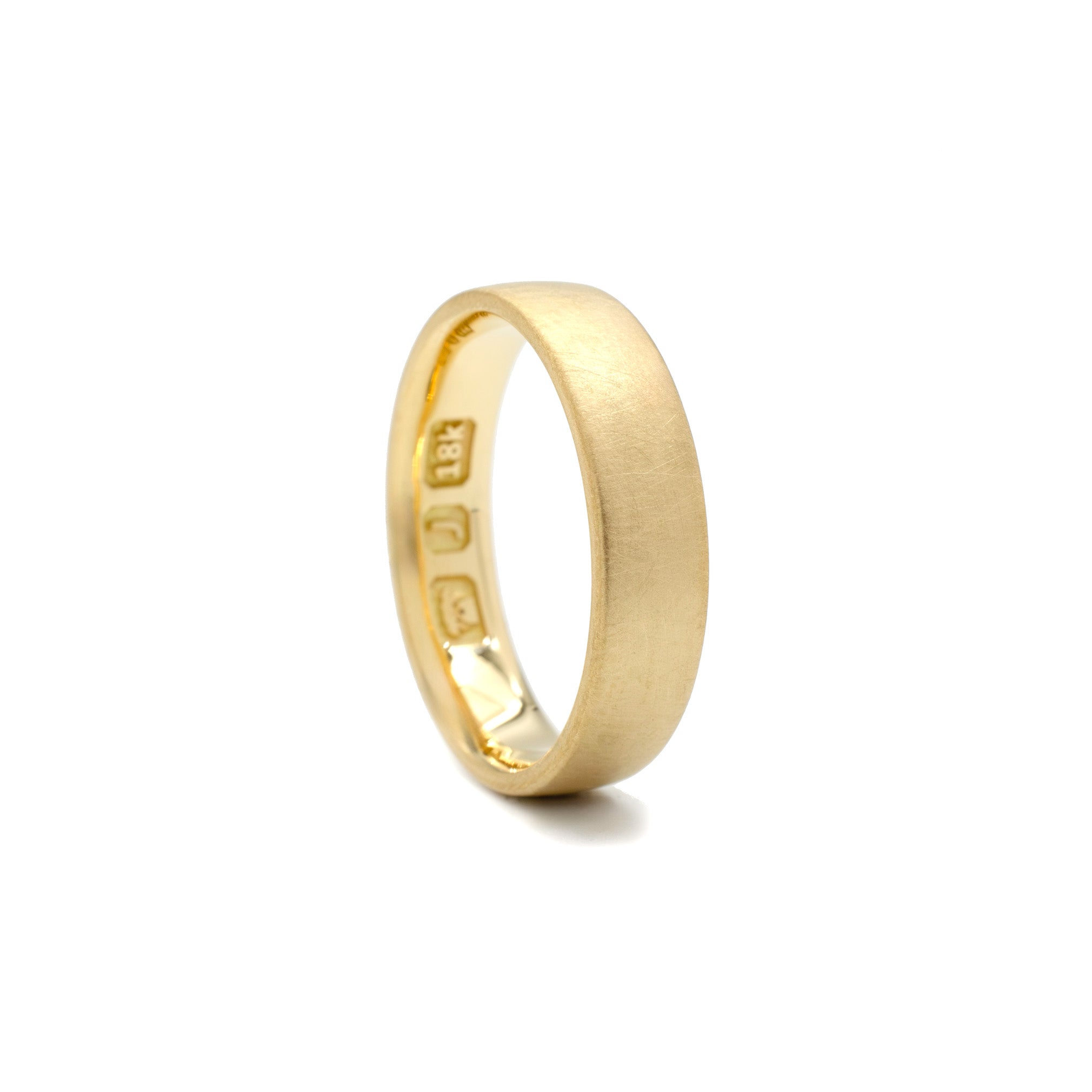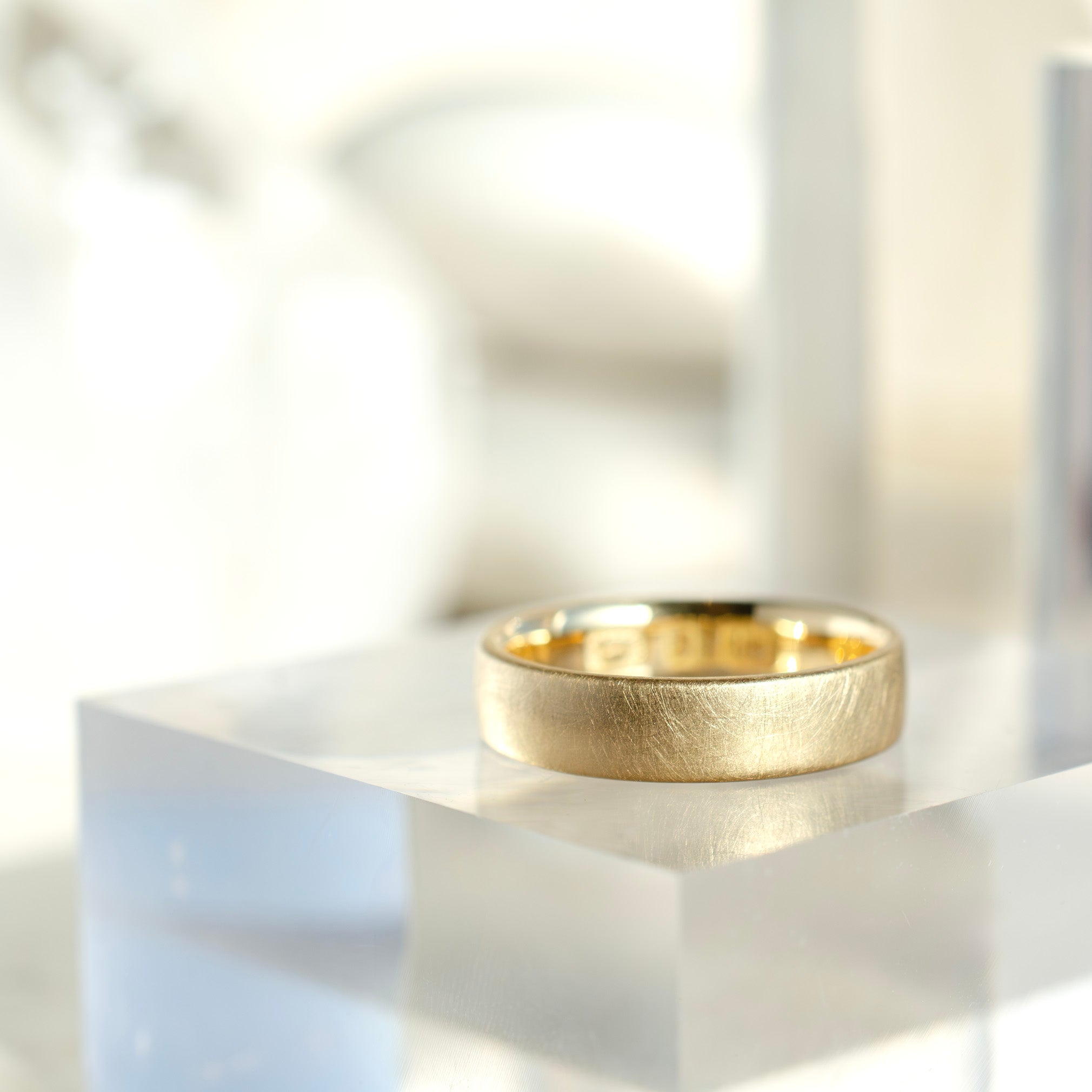 The Saunders is a return to the essential: a classic gold band crafted with the care and integrity that define true heirlooms. Made in solid 18k gold, its soft matte finish will evolve over time, developing a natural patina that reflects the life it accompanies. The contoured interior is shaped for ease, allowing the ring to settle comfortably into daily wear until it feels inseparable from you. Simple in form yet unmatched in quality, the Saunders is designed to endure for generations.