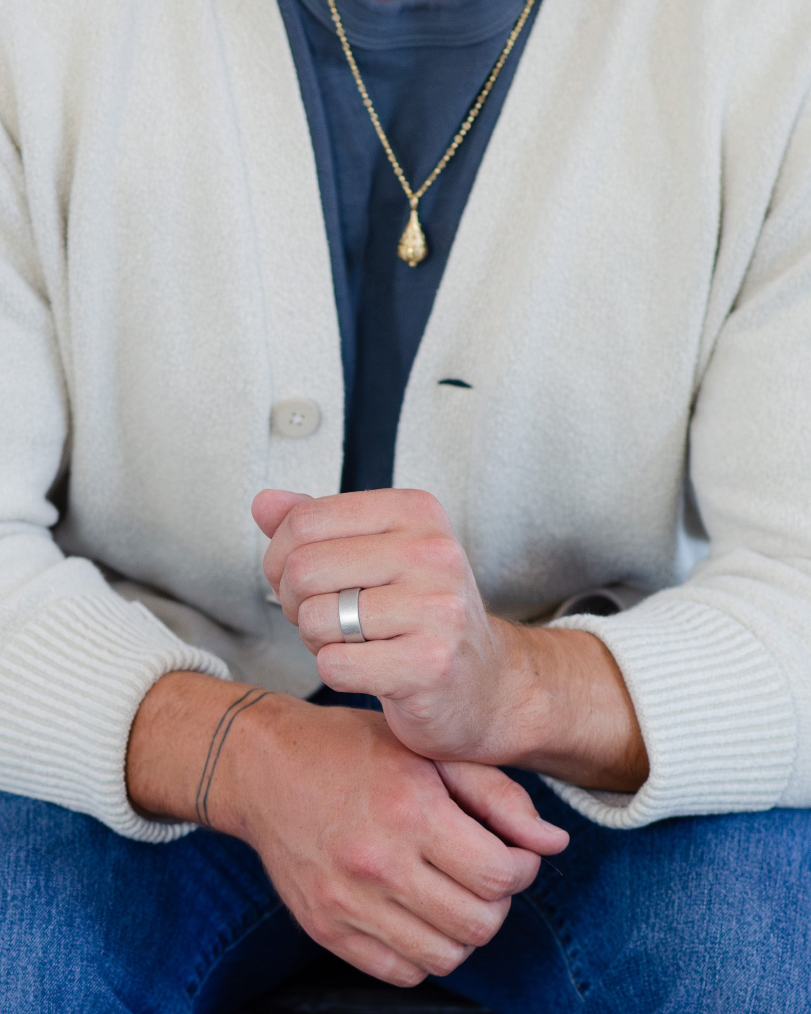 The Doc is a distillation of minimal design and understated presence. Its wide, flat profile and squared edges gives a clean, architectural feeling both contemporary and enduring. Made in solid platinum, it has a real sense of substance and gravitas. Though minimal in form, its proportions and weight make it significant. Inside, the contoured interior and heritage embossing record when, where, and by whom it was made, preserving a lineage of authenticity and purpose.