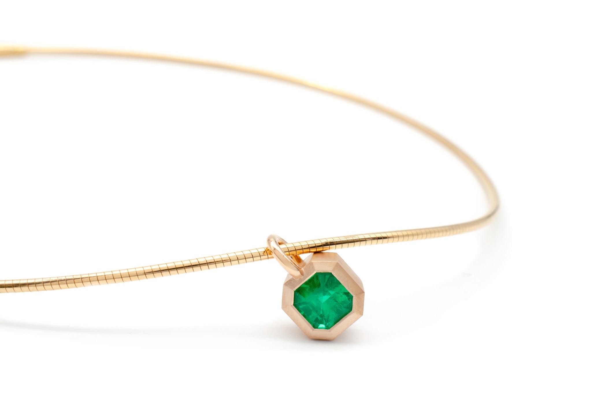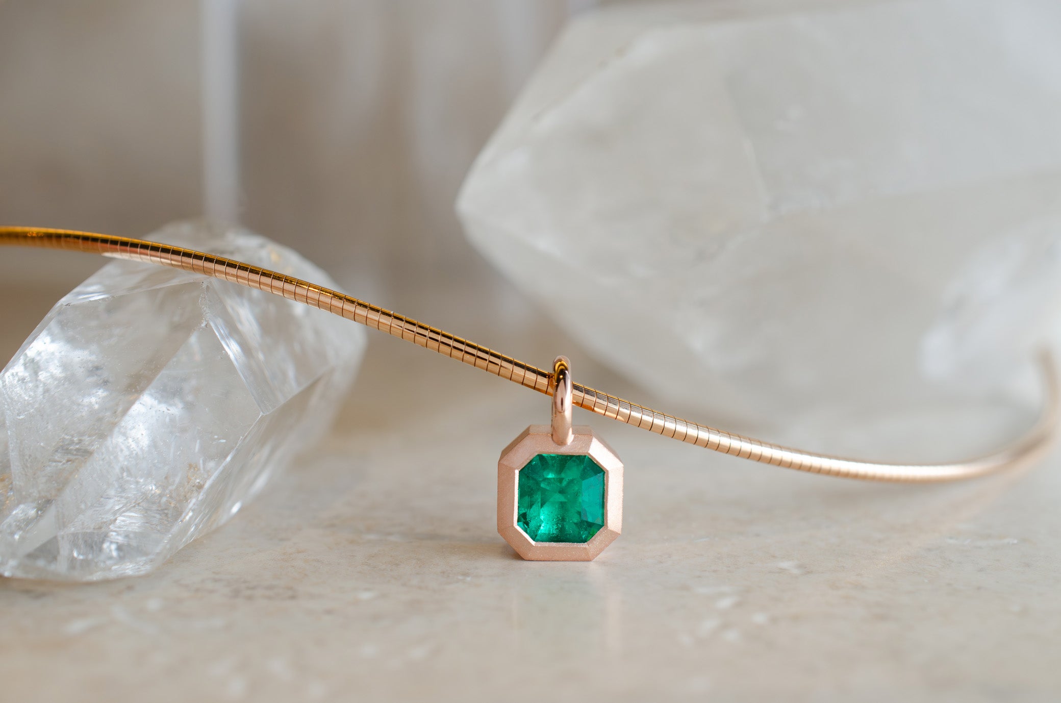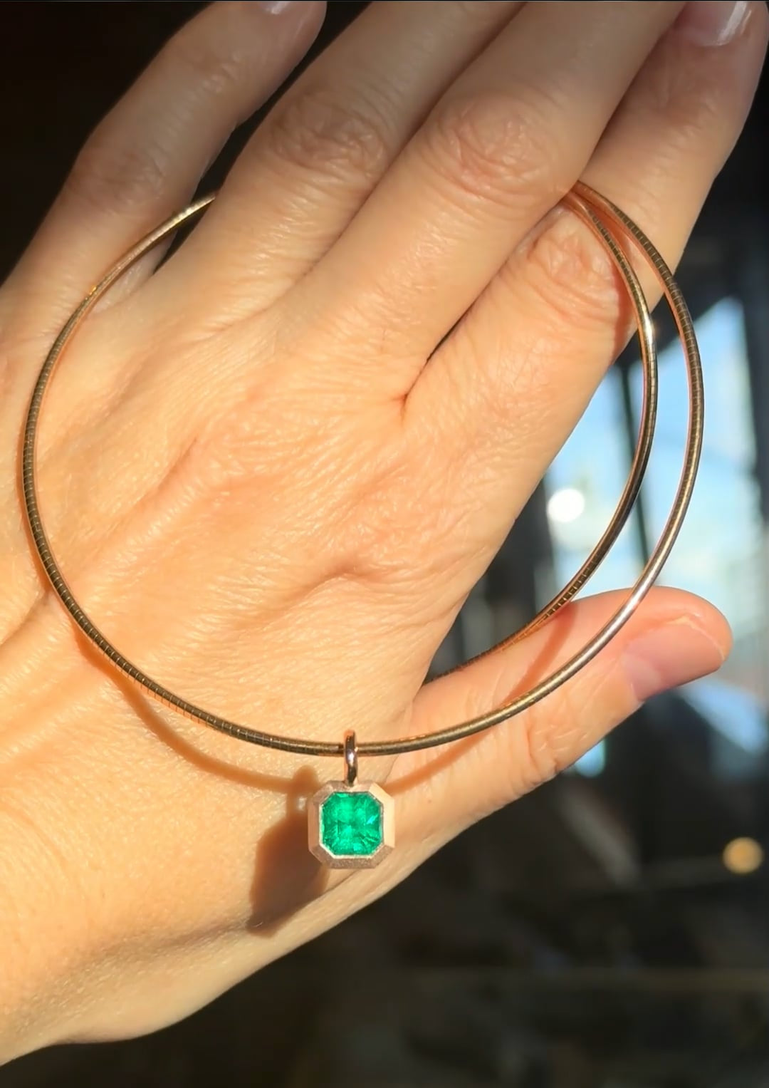 This pendant holds a natural Muzo emerald weighing 1.91 carats. The stone comes from the storied Colombian mine long associated with the richest and most sought-after greens. Look closely and the gem reveals its own history: botanical inclusions, mineral traceries, and delicate internal fissures formed over geological time, a natural archive far removed from anything driven by trend.