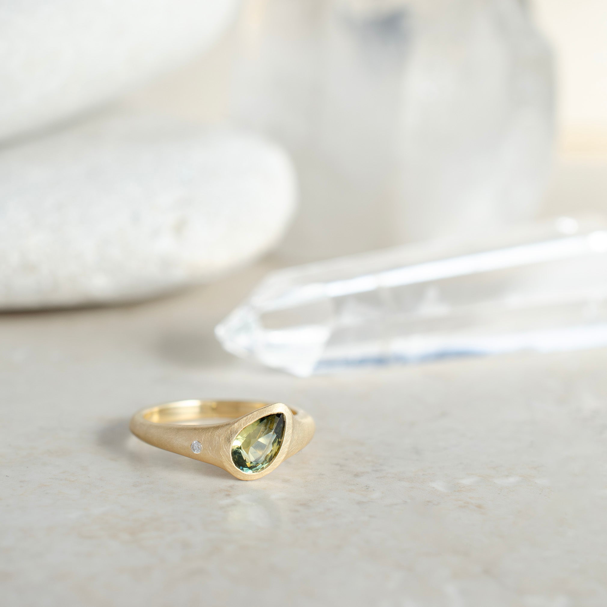 From our signature flat-top series comes a showcasing a natural, unheated sapphire in a vivid, spirited green. The stone has a brightness that feels almost joyful, its energy heightened by the elegant geometry of the low-profile design. Both striking and wearable, it’s a piece that speaks to modern life while carrying the timeless rarity of untreated sapphire.